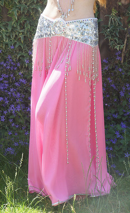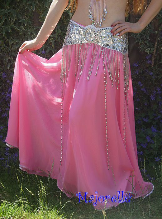 Beautiful wide skirt with side slits, finished with silver beads on the slit and a silver edge at the bottom.