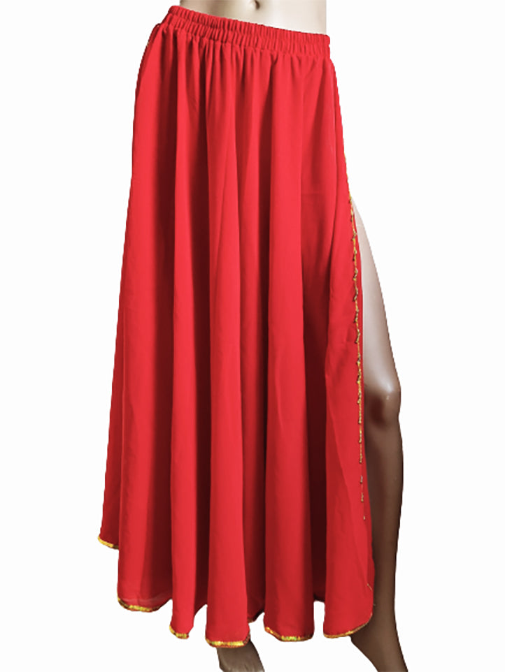 Belly dance skirt with slit, finished with gold beads.