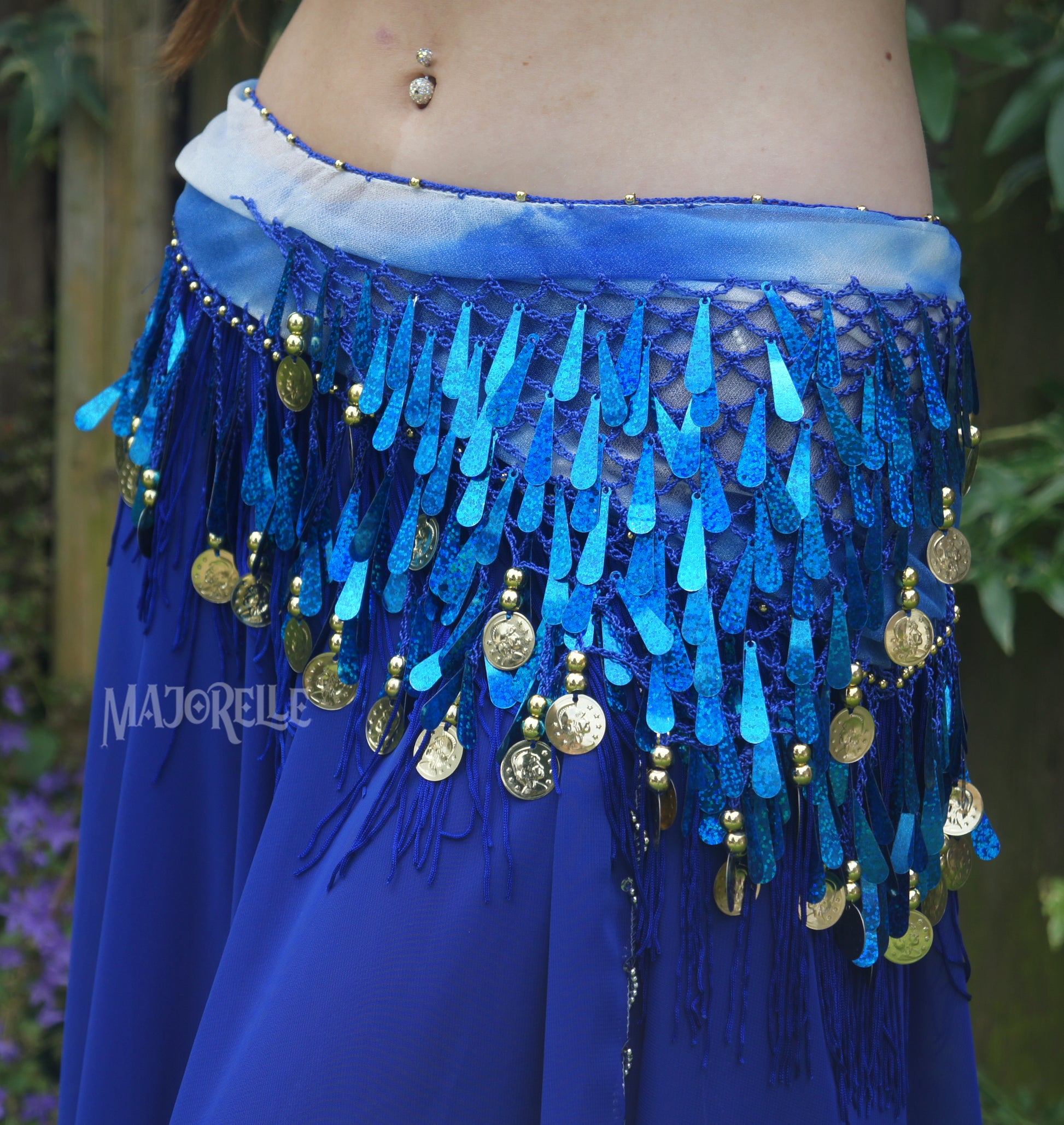 Hip scarf with very beautiful drop-shaped sequins in blue