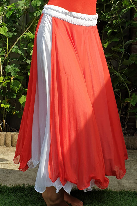 Skirt in 2 layers, top red layer falls over the bottom white layer.