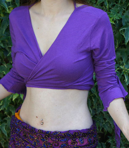 Cute purple tie top made of elastic jersey with butterfly sleeves.