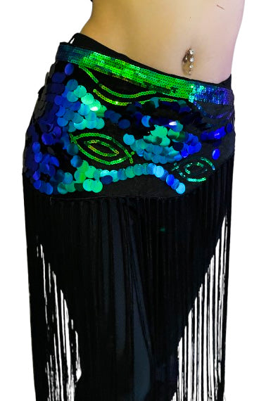 New: Belly dance hip scarf with sequins in turquoise