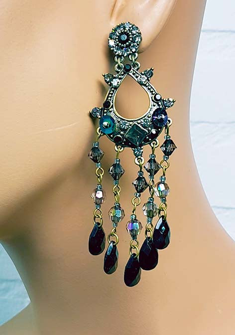 Chandelier Earrings with black stones with mother-of-pearl shine