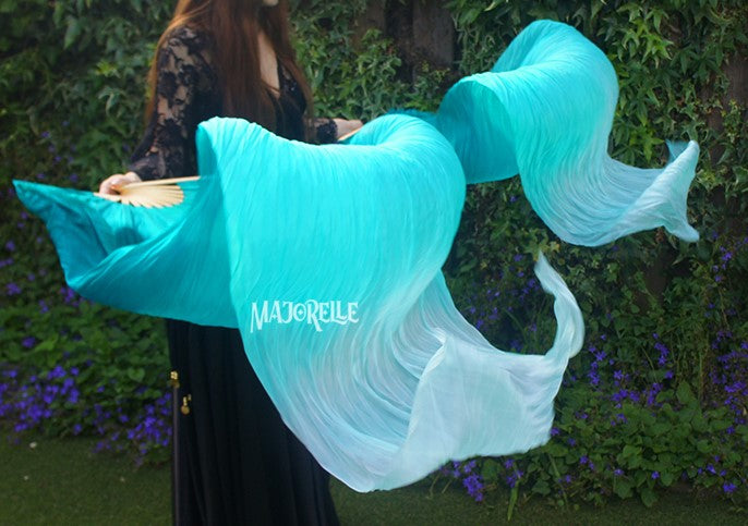 Silk fanveils in peacock green 150cm, these fans have a very special color!