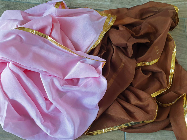 Semi-circular batik veil with gold or silver edge for a good grip.